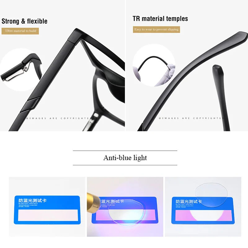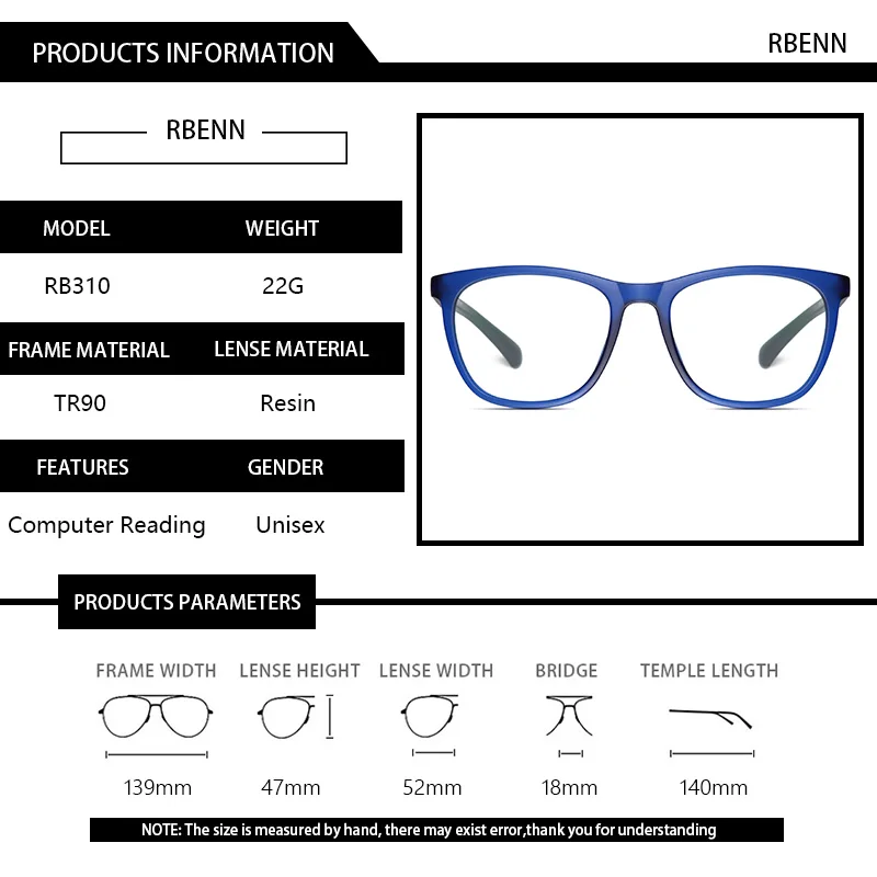 RBENN квадратная большая рама компьютерные очки для чтения с защито...