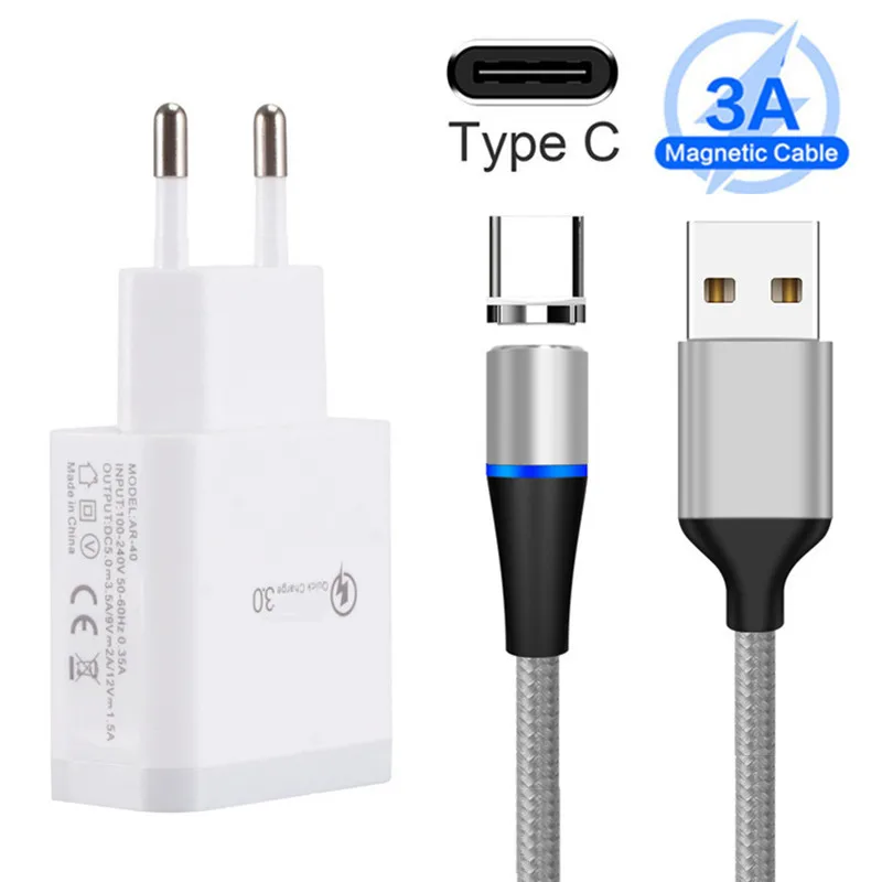 Быстрое зарядное устройство QC 3,0 для Samsung A22 A32 A52 M32 S22 S20 FE Huawei P30 Honor 10X lite Redmi 10 3A, магнитный USB-кабель Type-C
