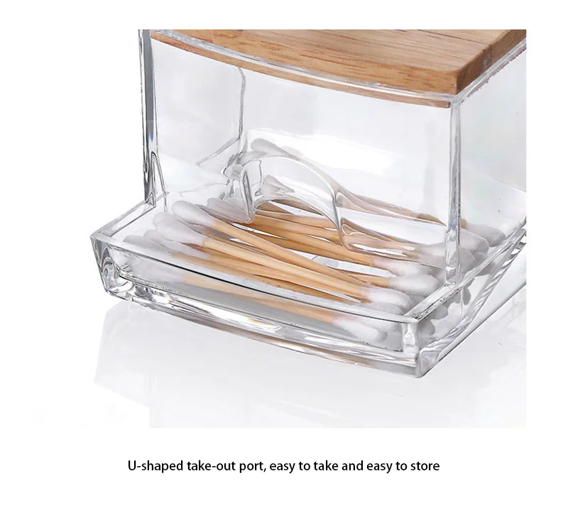 Особенности: 1. Дизайн бамбуковой крышки, подходит для хранения пылезащитных и влагостойких предметов, компактный и портативный, ближе к жизни. 2. В нем можно хранить небольшие предметы, такие как ватные диски, гигиенические салфетки, ватные палочки, зубная нить и т. д. 3. Различные стили для хранения любых мелких предметов. Материал: пс + акрил + бамбуковый чехол Наименование: акриловый деревянный ящик для хранения