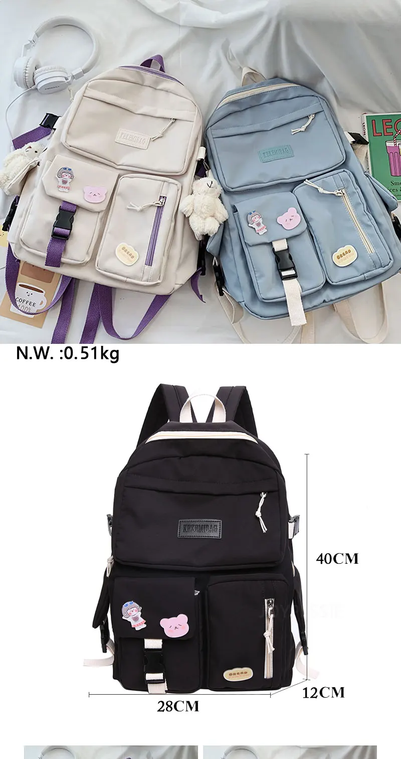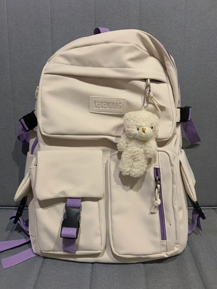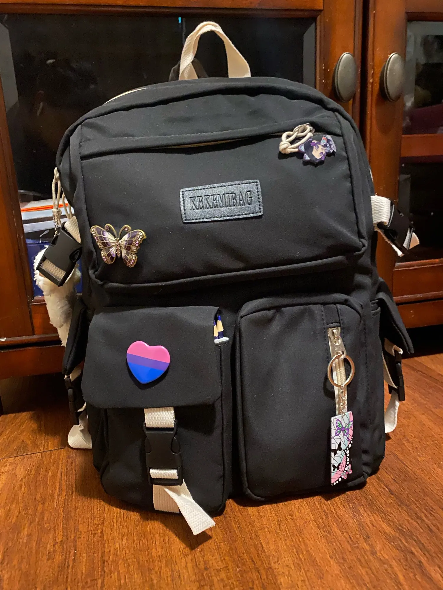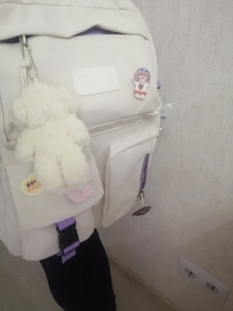 Рюкзак очень высокого качества и очень вместительный. Он имеет очень красивый дизайн, легкий и подходит для многих вещей. Поставляется с булавками, плюшевым мишкой и стикерами бесплатно. Доставка была быстрее, чем ожидалось. Рекомендуем!
