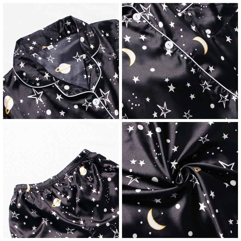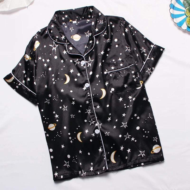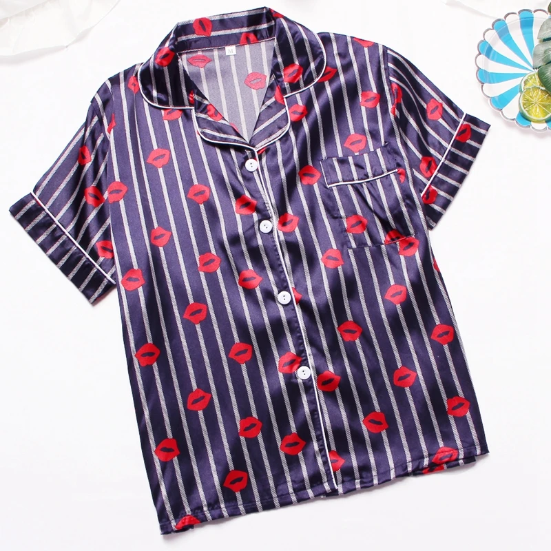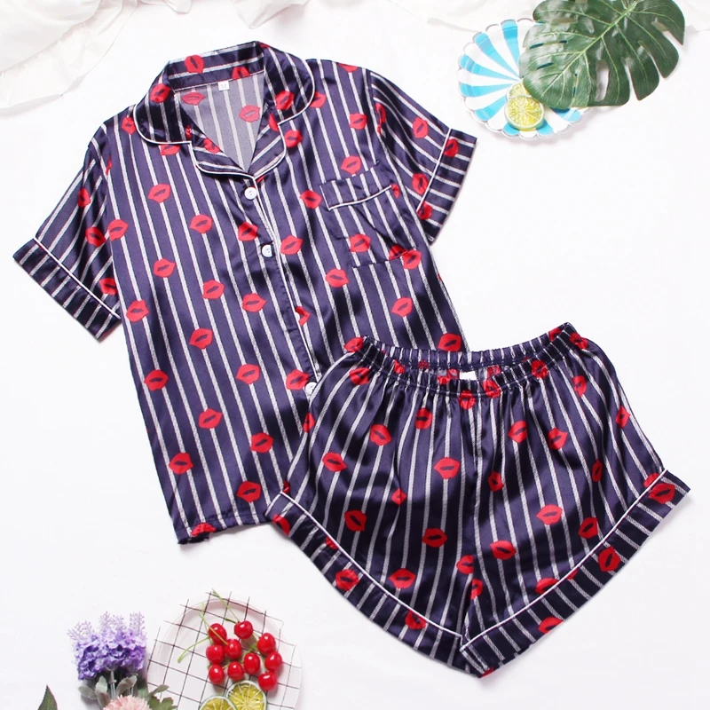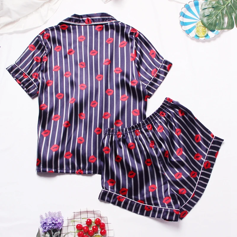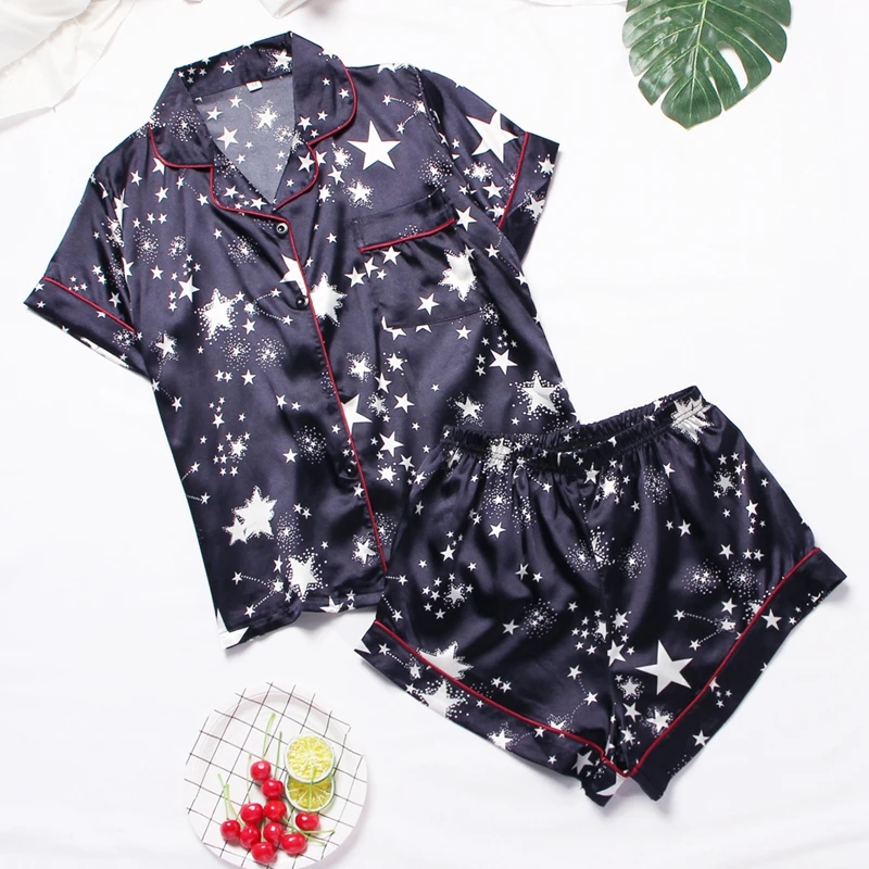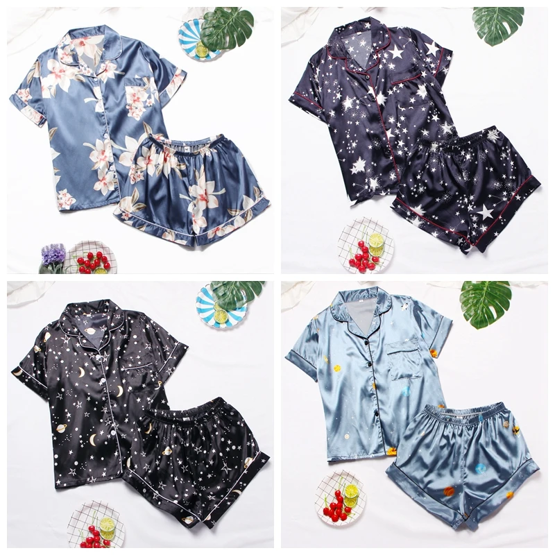 Пижама женская шелковая атласная, с коротким рукавом и шортами, пуговицы для пижамы