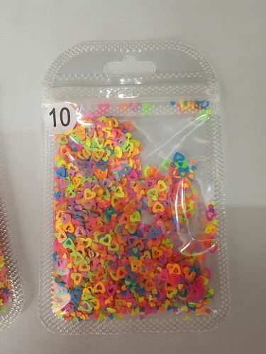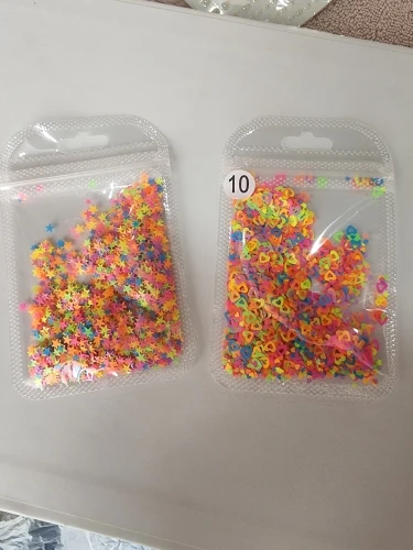 Матовый флуоресцентный цветной блестящий дизайн ногтейРазмер звездочек: 3 мм + 4 ммЕсть 9 видов цветов в общей сложностиМатериал устойчив к воздействию общих кислот и щелочейВыдерживает температуру: 180-200 градусов ЦельсияВес нетто каждого мешка составляет 2 г, вес брутто-3 г,Размер сумки: 7*11 см