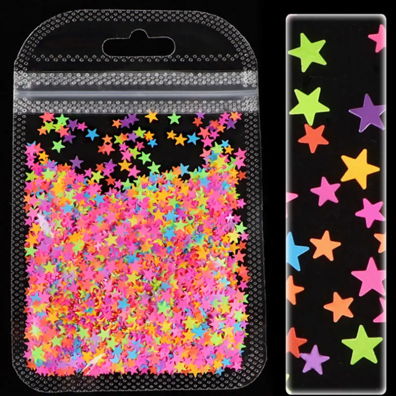 Флуоресцентные блестки звезды 3 мм4 мм неоновые Блестки для ногтей 3D смешанные цвета аксессуары для дизайна ногтей Гель-лак аксессуары для дизайна ногтей