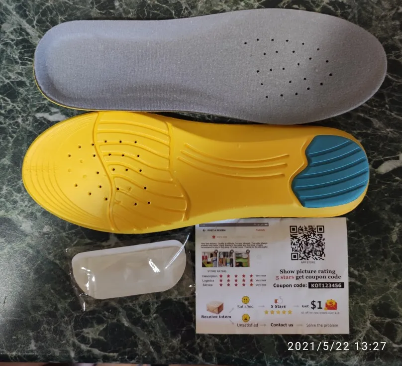 Стельки пришли на удивление быстро. Мягкие, пятку пружинит , что касается ортопедического эффекта пока не понятно, но стельки приятные на ощупь. В целом заказом довольна.