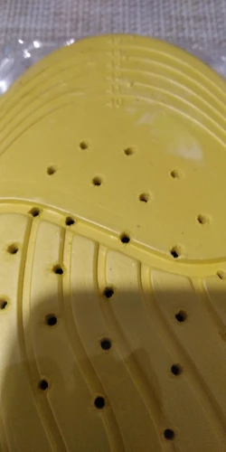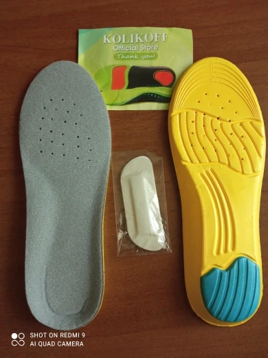 (Стельки пока не носила.) Всё хорошо, размер прислали верный (спасибо!), только мелкий недочёт - на 1 стельке в области, где плюсна стопы, посередине, немного продавленный участок серого материала стельки (1 кв. см), внешне не заметен, чувствуется при нажатии пальцем. Вероятно, это никак не повлияет при носке. Немного жаль, что эти стельки не такие же, как в 2020-м купила в fix-price - очень похожие, но именно носочная часть из ЭВА-материала (под пальцами и плюсной) была толще, чем у этих = т.е. больше амортизации в этой части (материал сверху тоже другой, но это не важно). Хотя по картинке и фотографиям в отзывах было понятно, что тут тоньше. Те стельки очень нравятся и удобные, хорошая амортизация уже почти год (хотя мне слегка не хватает ортопедичности: поддержки свода сбоку, с внутренней стороны стопы), поэтому искала такие же. Спасибо! Довольна заказом.