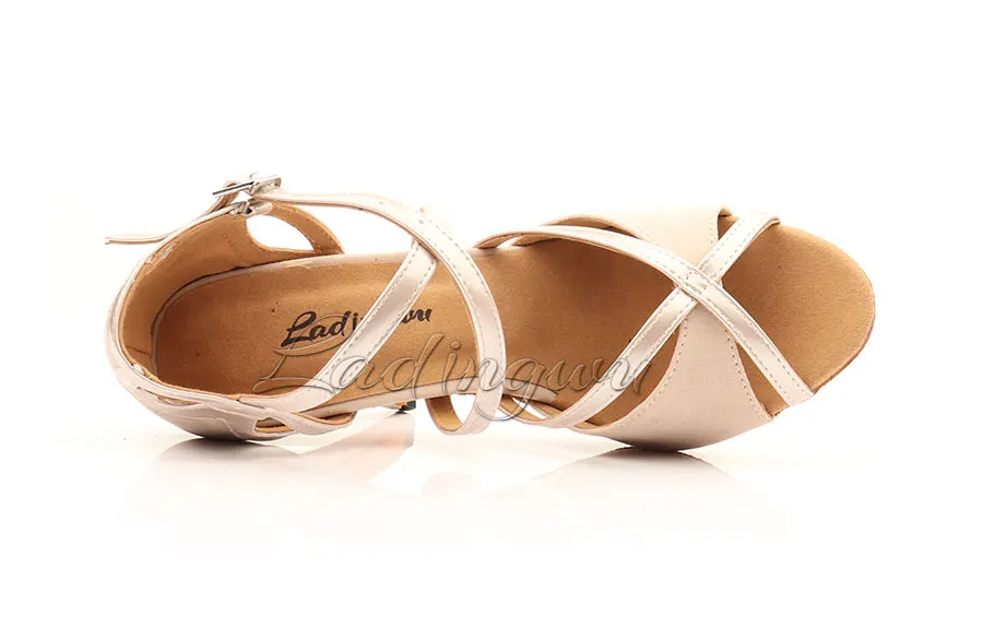 Ladingwuтуфли для латинских танцев; женские бронзовые атласные танц...