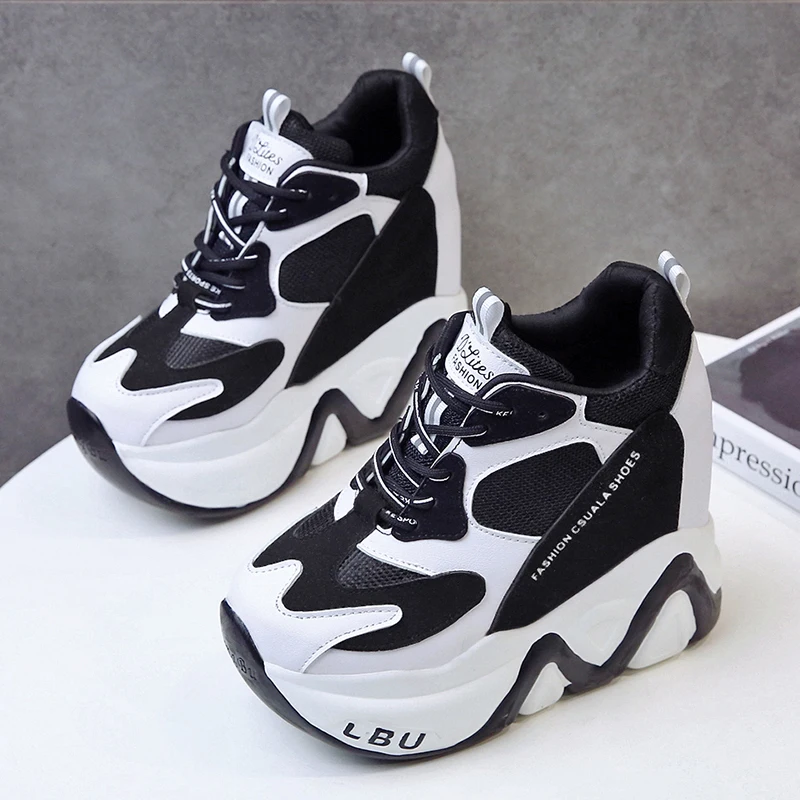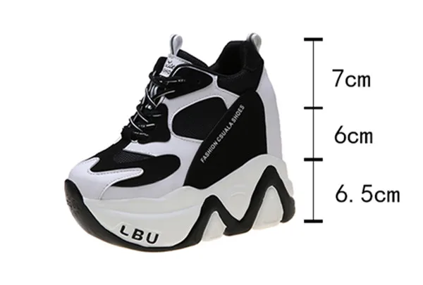 Кроссовки женские на платформе, Повседневная дышащая обувь на танкетке, высокий толстый каблук 12,5 см, Deportivas Mujer, на осень