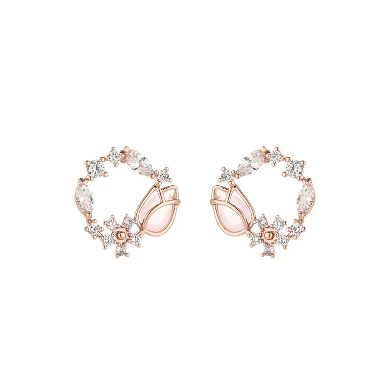 Серьги из розового золота подвеска в форме цветка розы пробы с цирконом