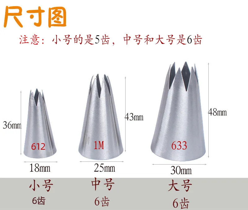 Большой, средний и маленький прямой шестизубчатый комплект из 3 предметов, 3 шт., украшение для рта, печенья, торта, распущенных роз, инструменты для выпечки