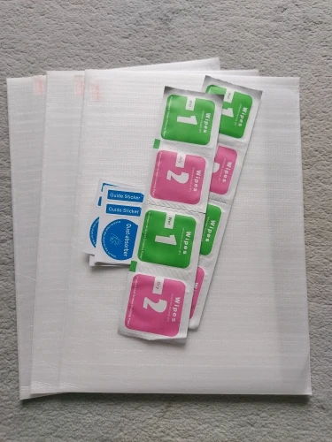 Пришло три стекла. Все салфетки и спикеры были на месте. Упаковано хорошо! Без трещин, сколов и иных повреждений. Дошло всё быстро!