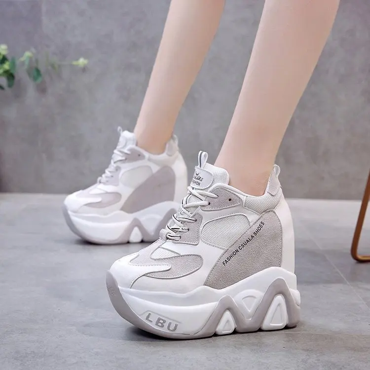Женские кроссовки на платформе, сетчатые дышащие кроссовки на танке...