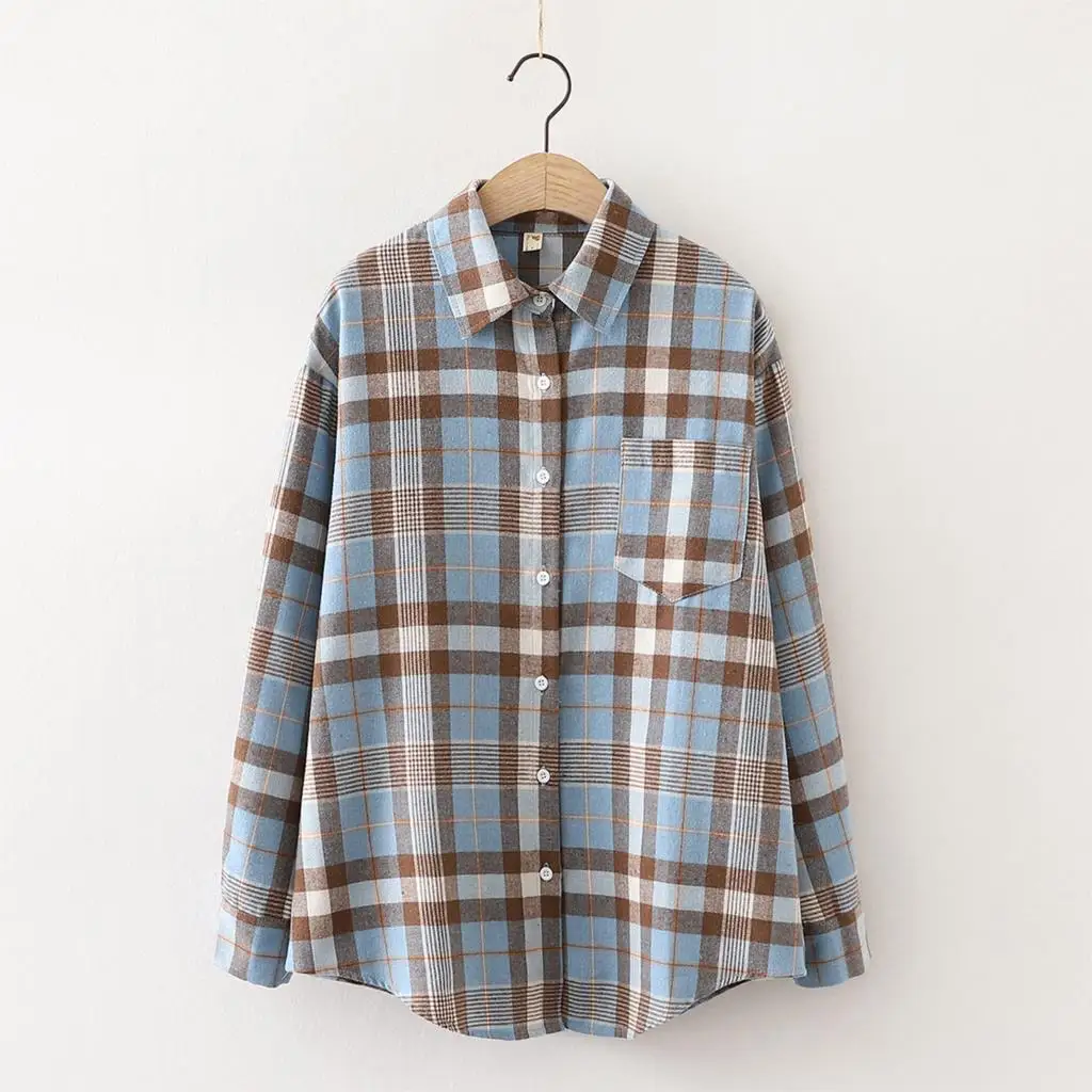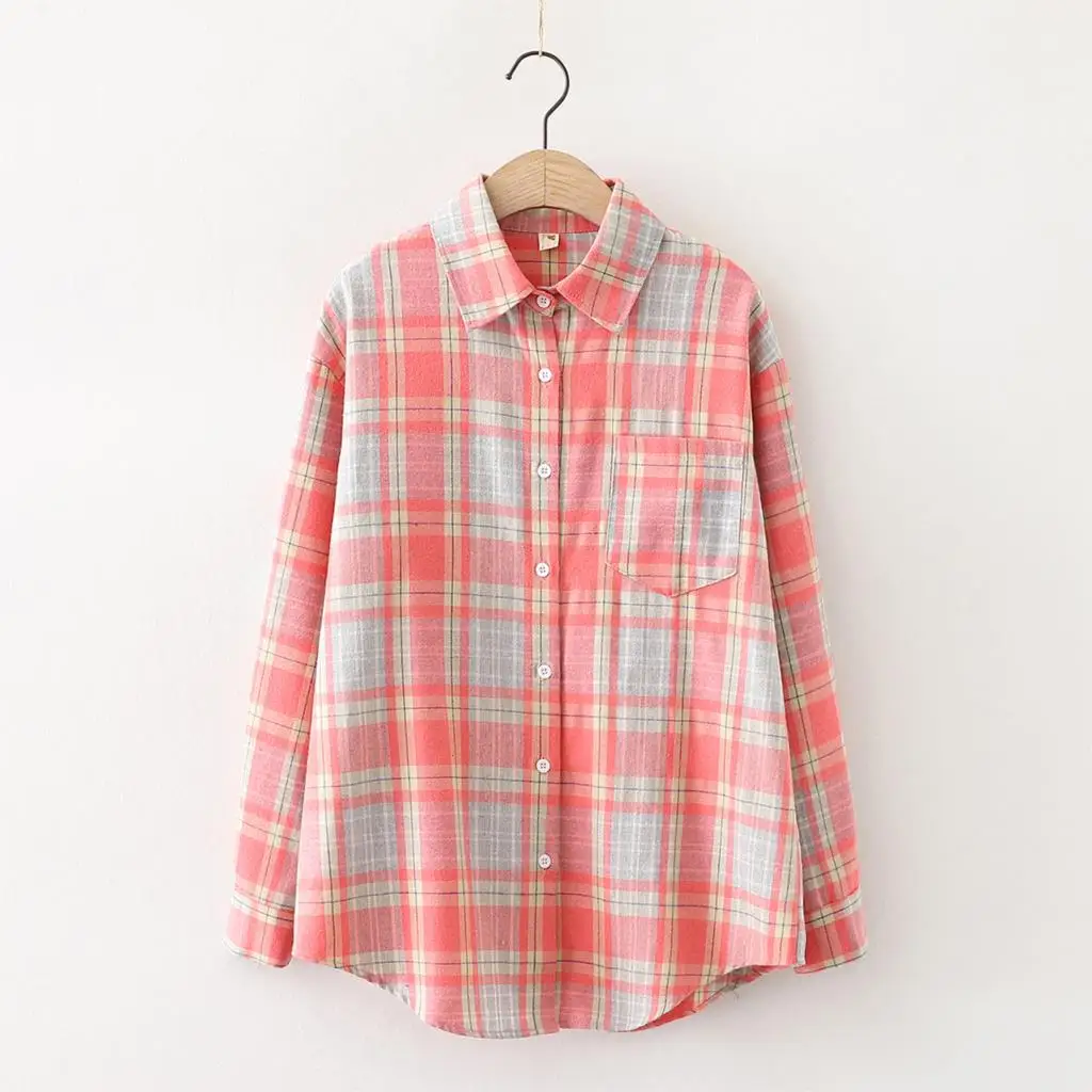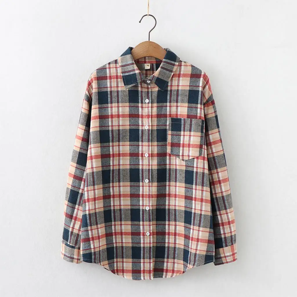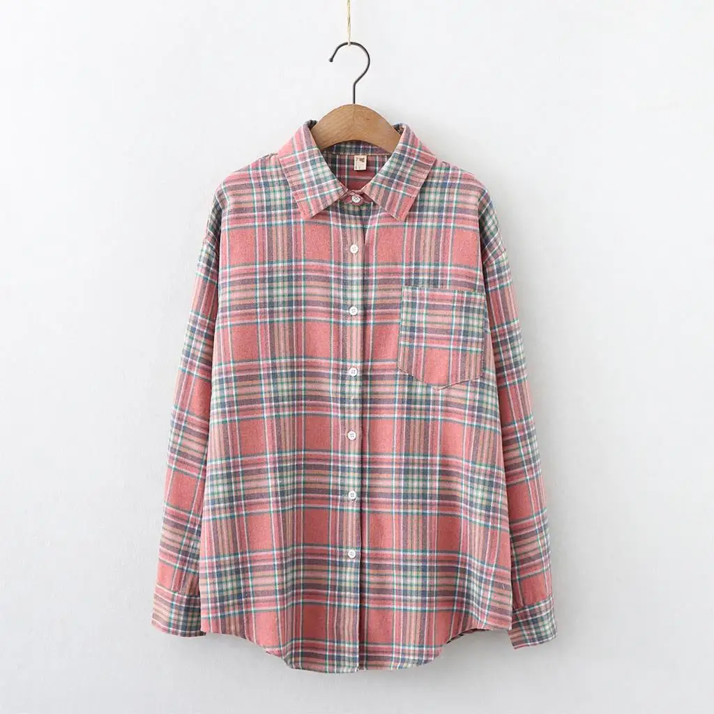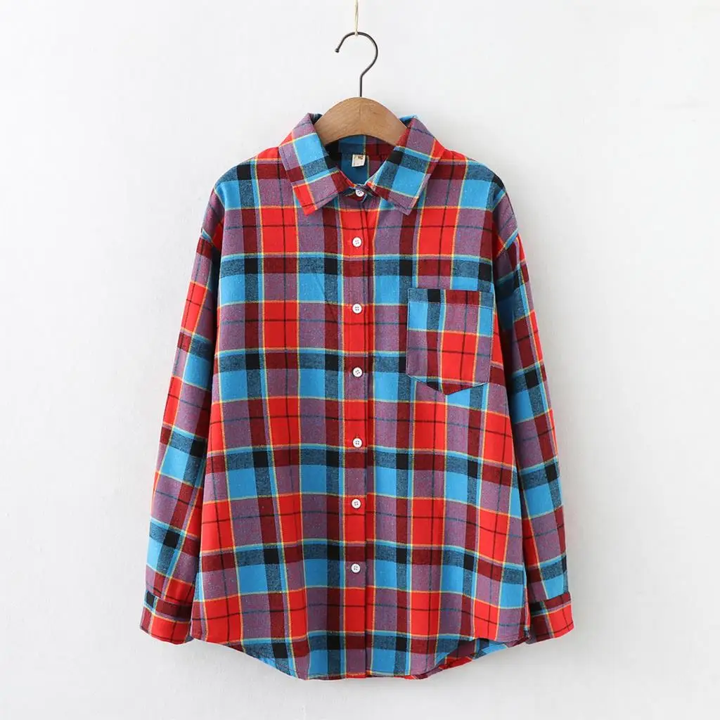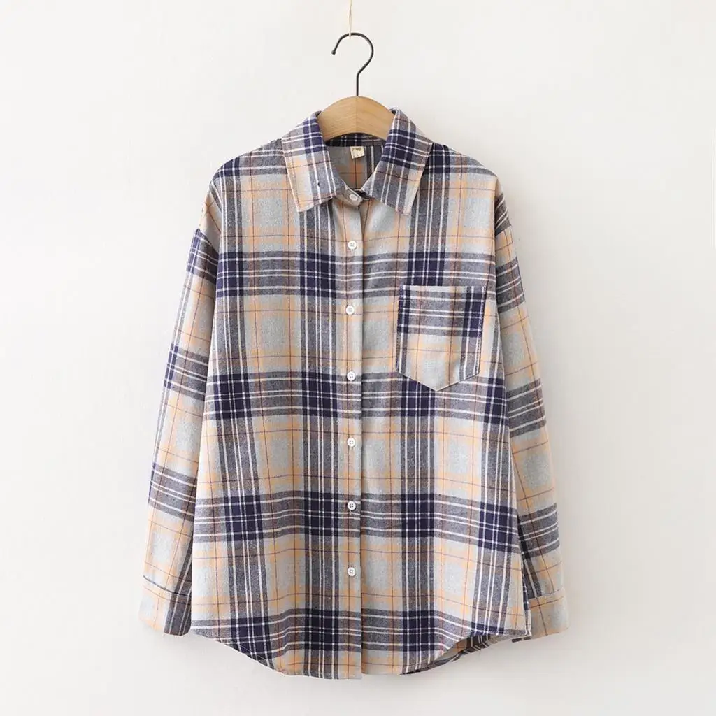 Женская фланелевая рубашка в клетку, Новинка осени 2020, женская блузка, свободные блузки с длинным рукавом, Женская хлопковая Повседневная Новая Дизайнерская одежда