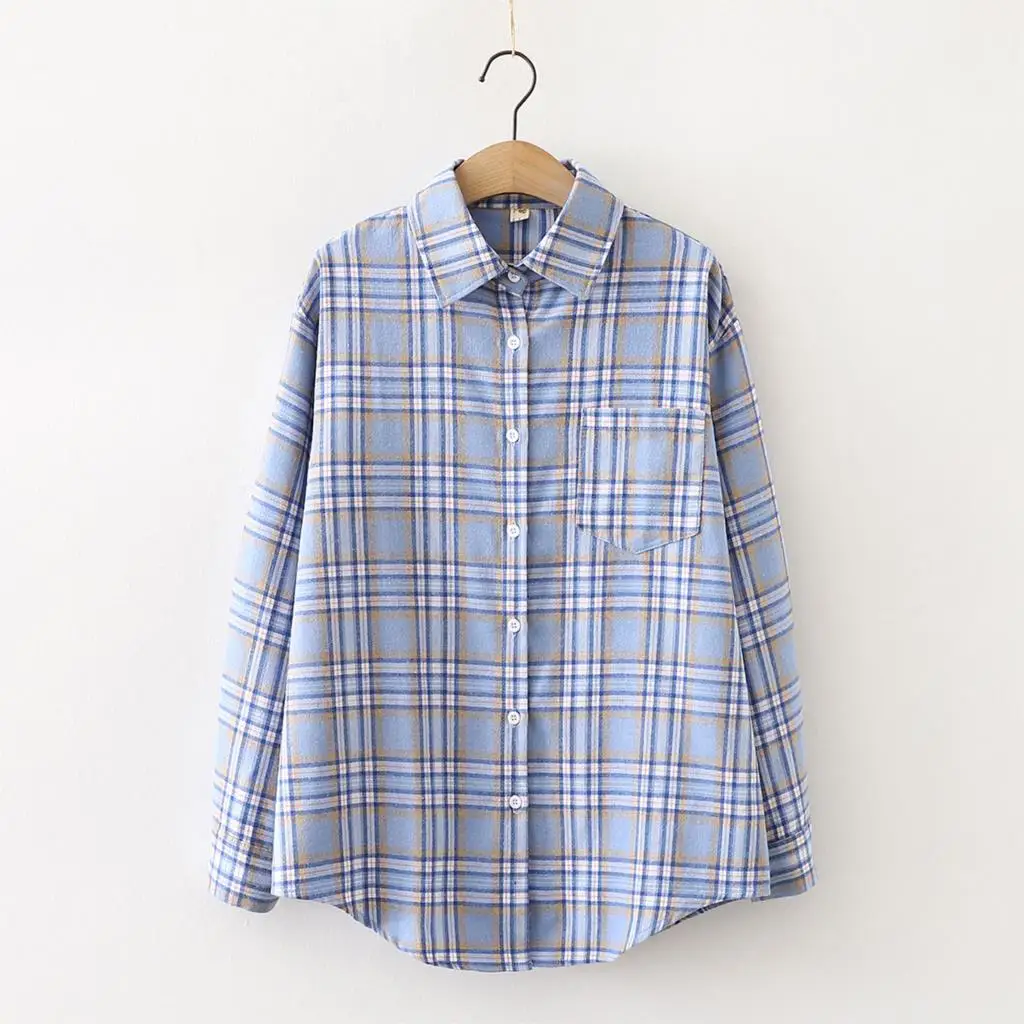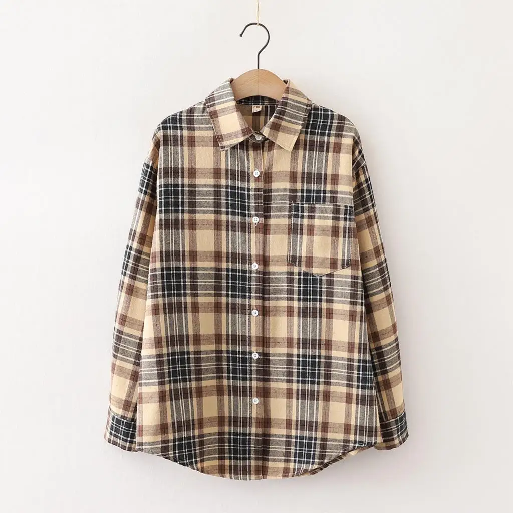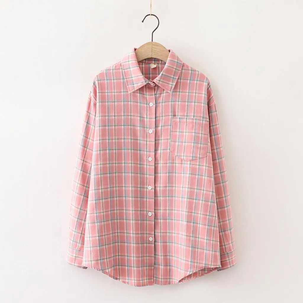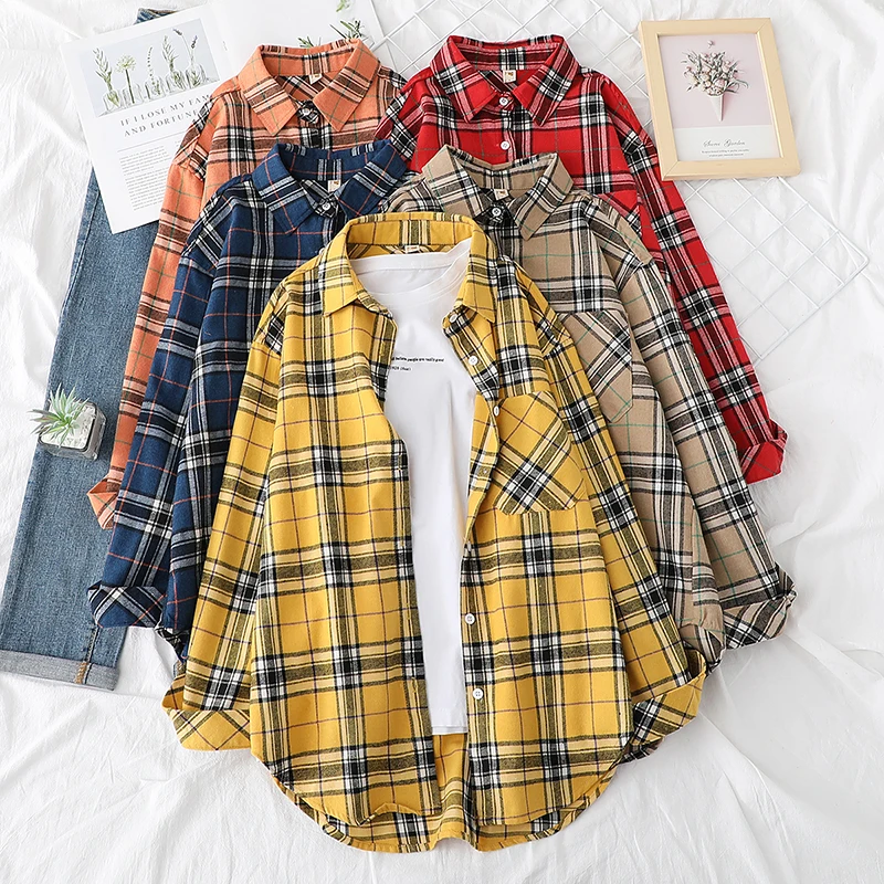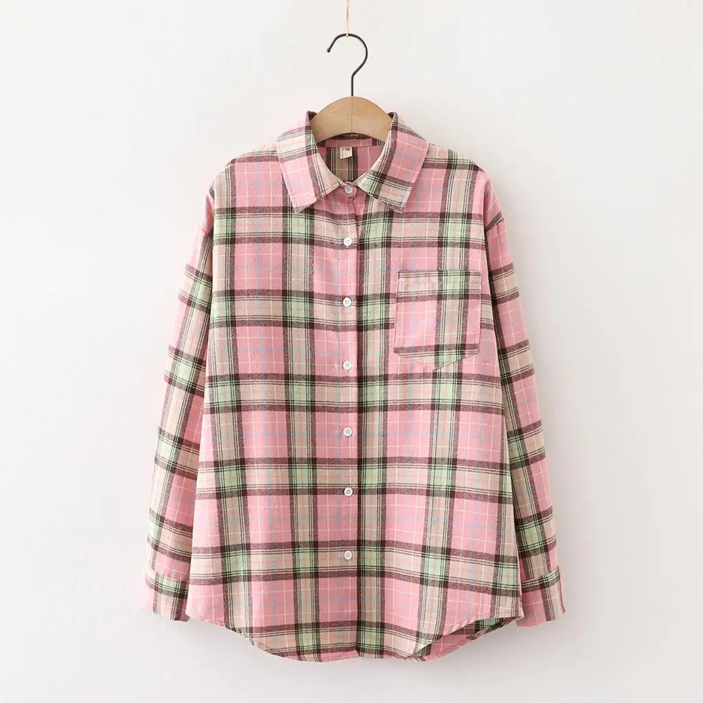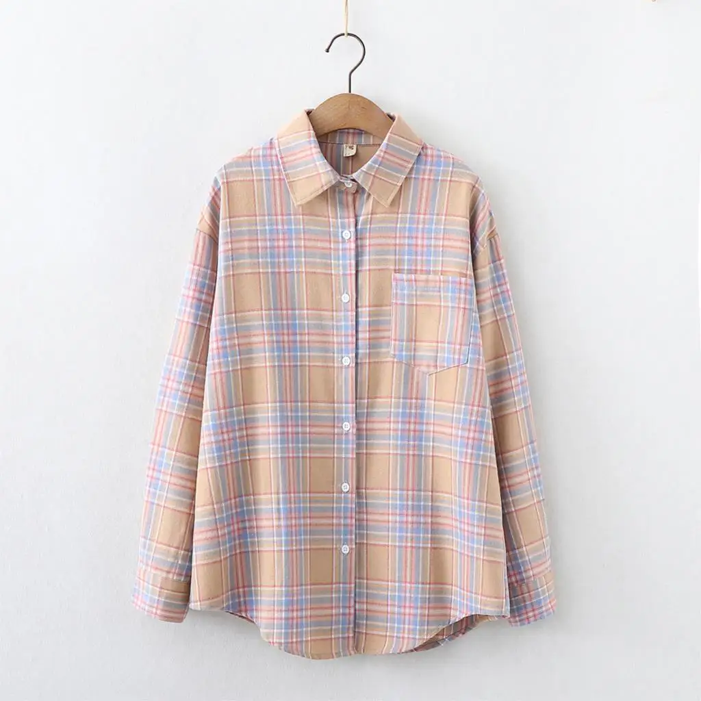 Женская фланелевая рубашка в клетку, Новинка осени 2020, женская блузка, свободные блузки с длинным рукавом, Женская хлопковая Повседневная Новая Дизайнерская одежда