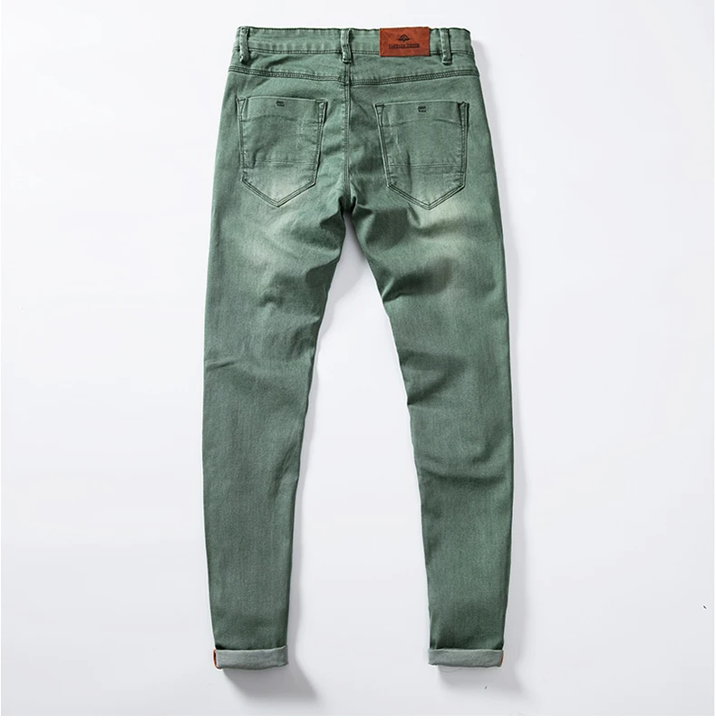 Мужские цветные джинсы, эластичные узкие джинсы, мужские Модные Повседневные зауженные джинсы, мужские зеленые, черные, хаки, брюки, мужские Брендовые брюки