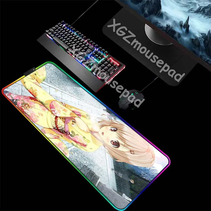 Игровой коврик для мыши XGZ Сексуальная аниме-девушка, большой RGB-коврик для мыши, компьютерный коврик для мыши, светодиодная подсветка, XXL, коврик для размещения клавиатуры