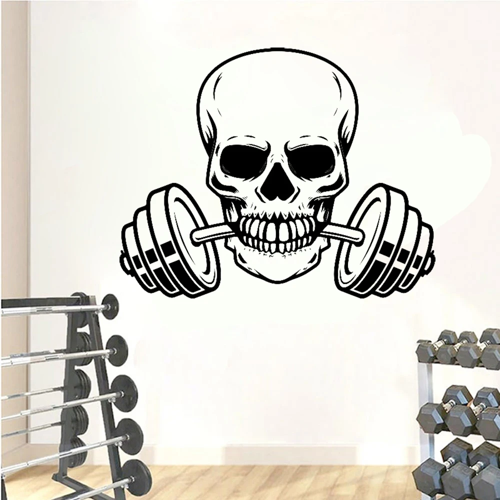 Тренажерный зал фитнес настенные стикеры Череп штанга Кроссфит Спортивная Настенная Наклейка Наклейки для упражнений виниловые украшения для зала аксессуары C372