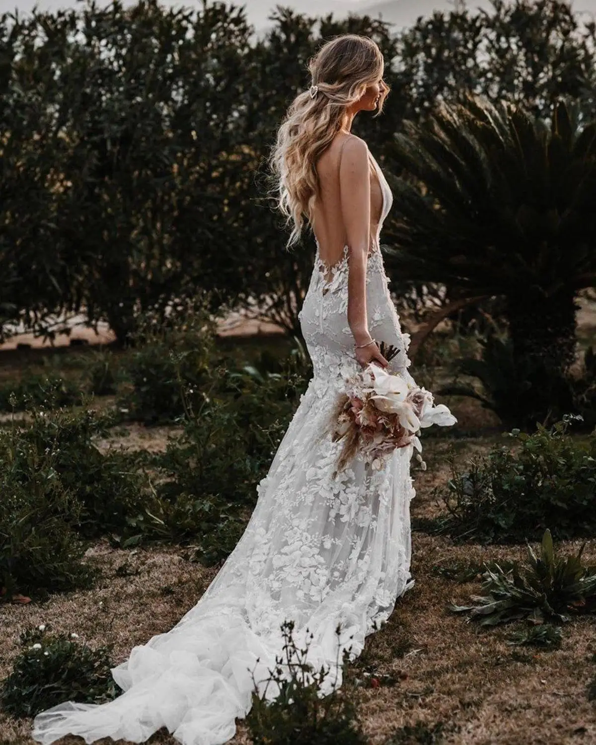 Скромное Бохо свадебное платье русалки 2021 3D Цветочный vestidos de novia кантри сексуальные свадебные платья без спинки Глубокий v-образный Вырез свадебные платья