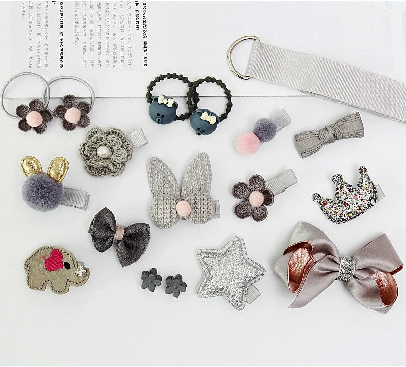 Набор зажимов для волос, 18 шт., милые аксессуары для волос, женский головной убор, бант, цветок, животное, Шпилька для волос, эластичный головной убор