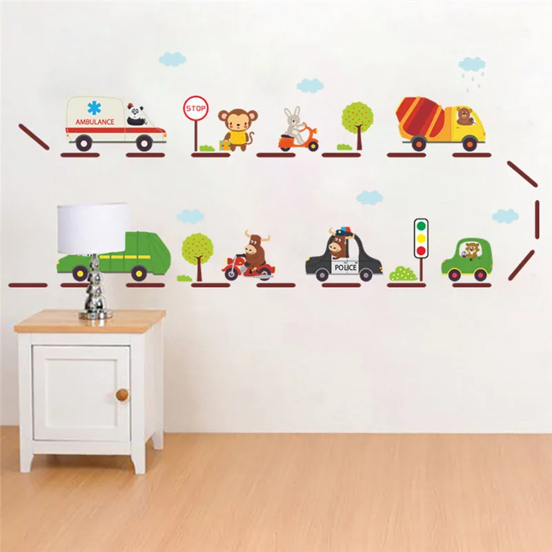 3D Мультяшные автомобильные наклейки на стену для детской комнаты, ...