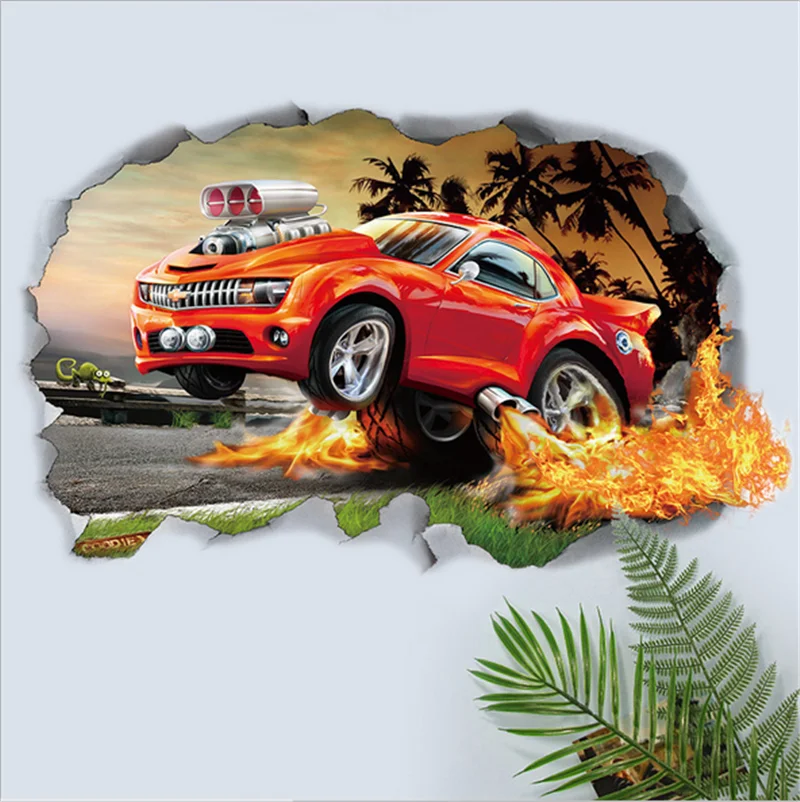 Яркий мультяшный 3d яркий автомобильный настенный стикер для детской комнаты, гостиной, для мальчика, для спальни, настенные наклейки, домашний декор