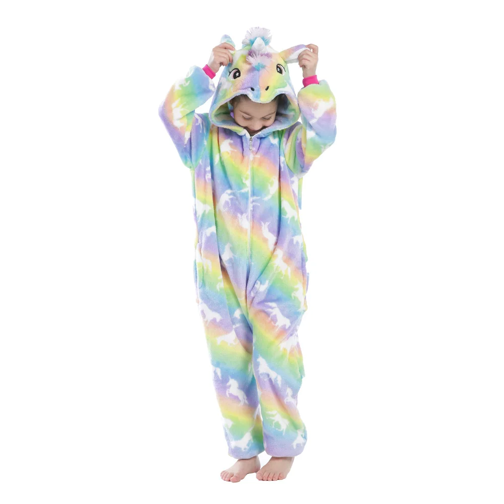 Детские пижамы с капюшоном, пижамы с единорогом для маленьких девочек, пижама-кигуруми с животными, рисунками зебры, радуги, пижама для девочек, одежда для сна для детей