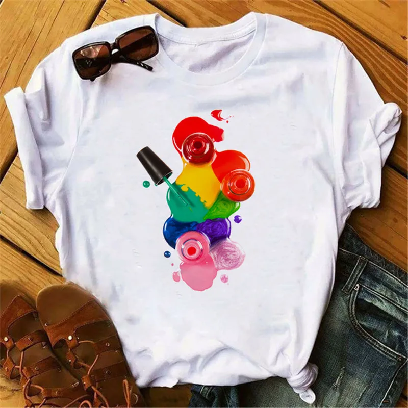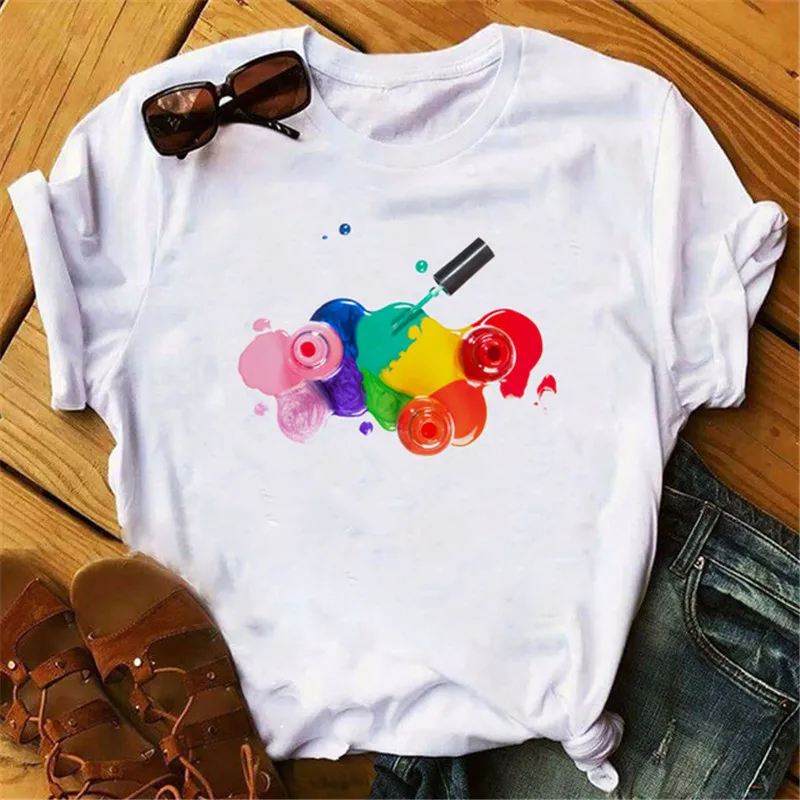 Женская футболка с графическим 3D принтом для ногтей, цветная модна...