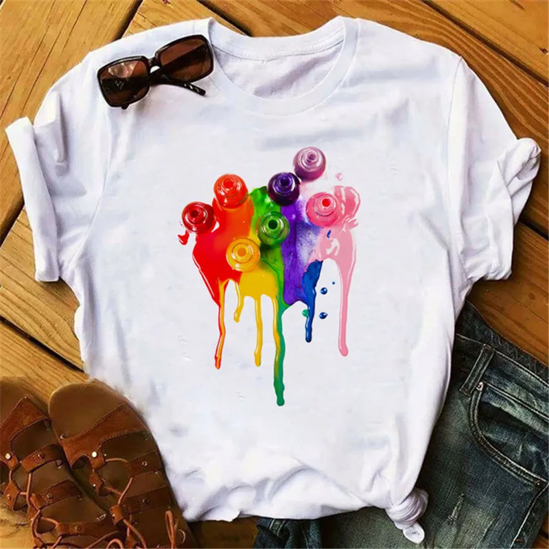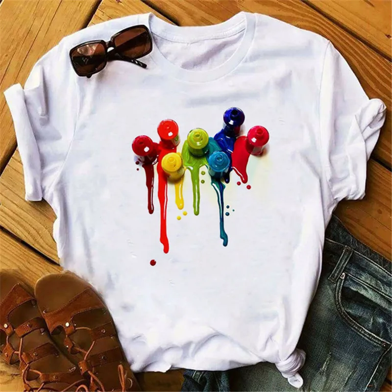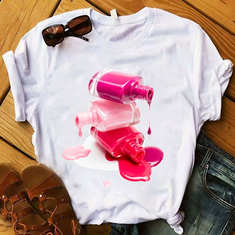 Новая красочная женская футболка с 3D принтом лака для ногтей, летн...
