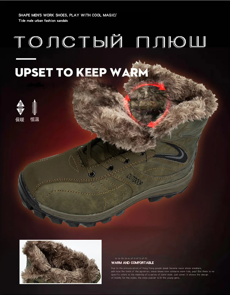 Мужские ботинки с высоким берцем, уличные Нескользящие ботинки, удобные теплые, рабочая обувь, размеры 48, для зимы