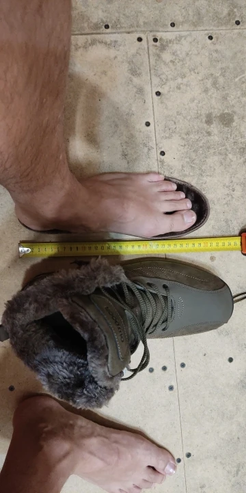 Посылка пришла за 25 дней. Ботинки теплые, проверил в минус 35 градусов. Постелил вторую стельку для удобства и хорошей амортизации, так как подошва не супер комфортная изнутри. Вторая стелька также предохраняет подошву от промерзания. Предыдущие аналогичные ботинки проносил две зимы и по теплу нареканий нет, в минус 45 нога не замерзает. Единственное, что бесит это несоответствие размера. У размера 13 длина стельки 30 см, длина моей ступни 28,6 см, как написал выше я положил дополнительные толстые стельки и ноге свободно. На мою ногу 43 размера можно спокойно брать 12 размер. У 14 размера длина стельки 31 см. Прибавьте везде по пол размера минимум на то, что носок ботинка ровнозакругленный. Вывод: для холодной зимы боты огонь, но кожа не натуральная, поэтому износостойкость на тройку. Хотя проносить 2 зимы за такие деньги достойно. Минус, что боты промокают, поэтому нужно сразу обработать водоотталкивающей пропиткой и повторять процедуру. Товар рекомендую, главное уточняйте размер.