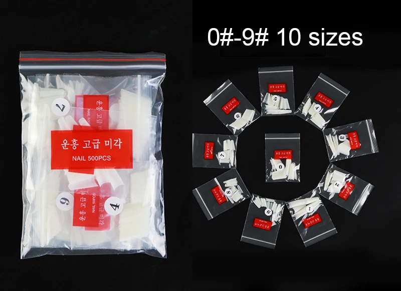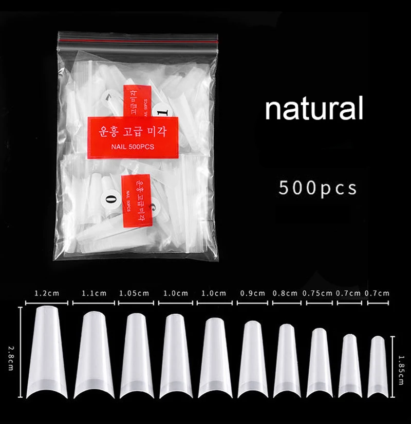 Совершенно новый и высокое качество. 500 шт. акриловых кончиков для ногтей с 10 различными размерами. 50 шт. каждого размера, всего 500 шт. Каждый размер правильно упакован в пакет с предварительным номером. Создайте свои ногти для свадьбы, вечерние или для свиданий. Профессиональное наращивание ногтей и изготовление дизайна ногтей. Вы можете украсить ногти на этих ногтях. Простота в использовании, идеальное украшение и долговечность.