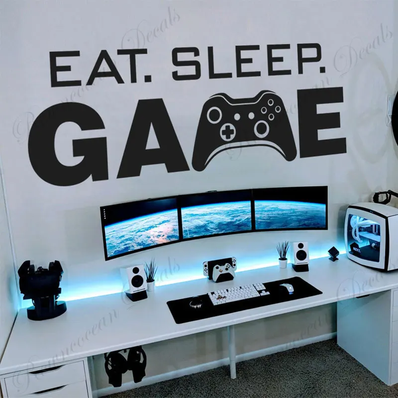 Наклейка на стену Eat Sleep для детской комнаты, игровых игр, игров...