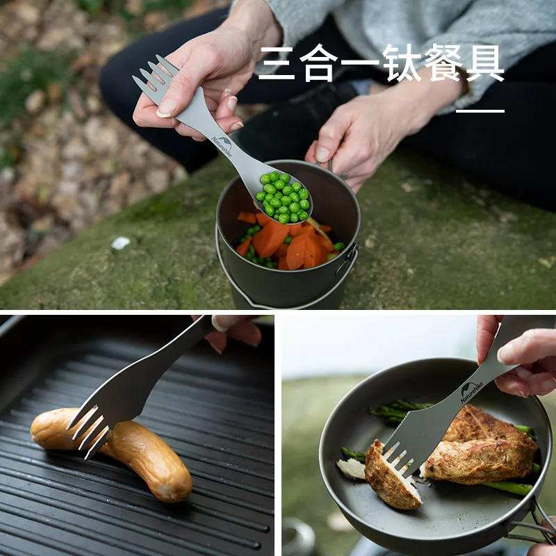Портативные титановые столовые приборы Naturehike, 3 в 1, нож, вилк...