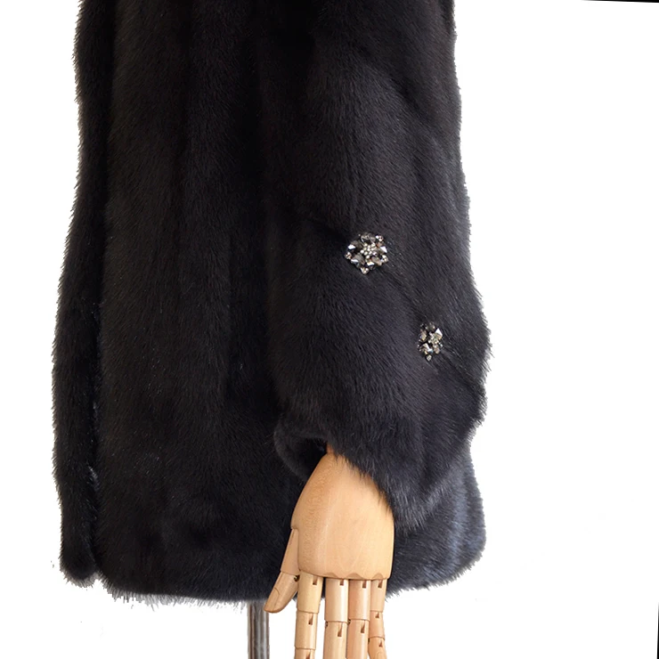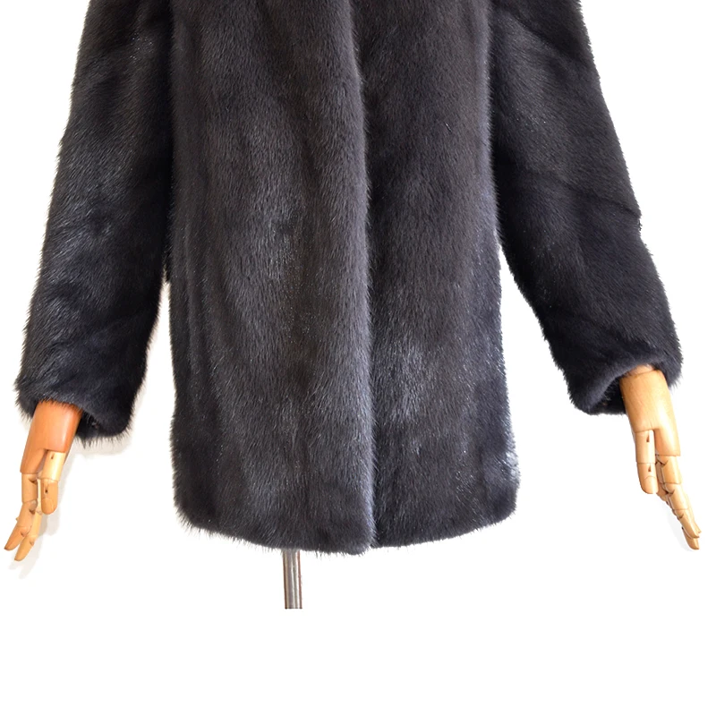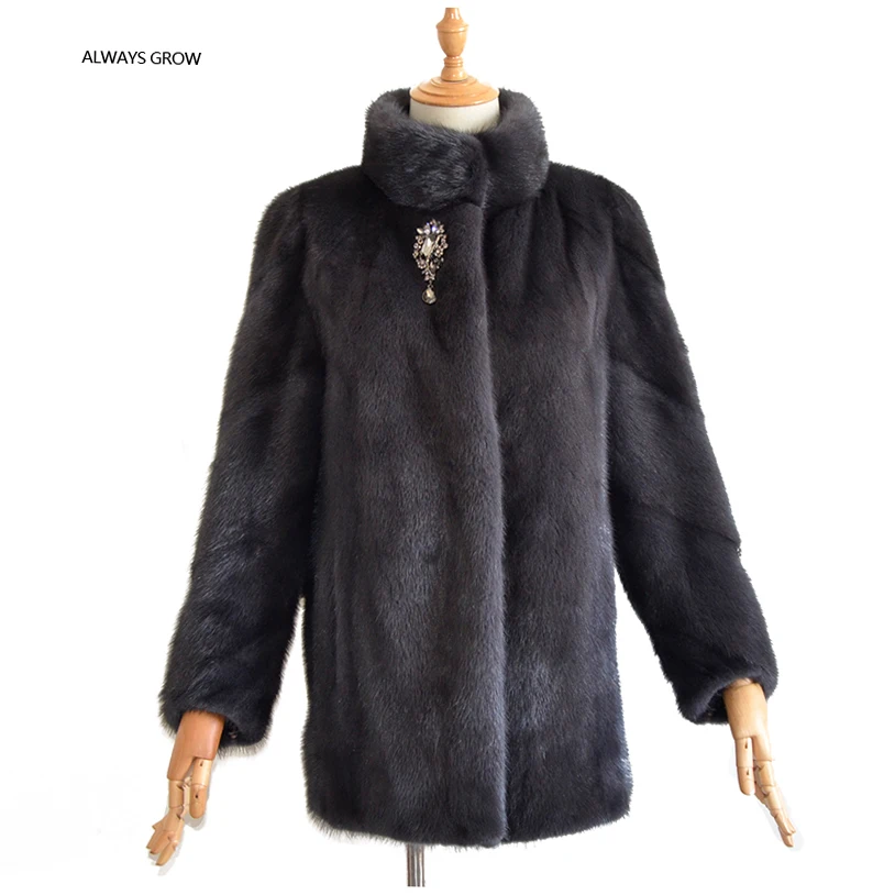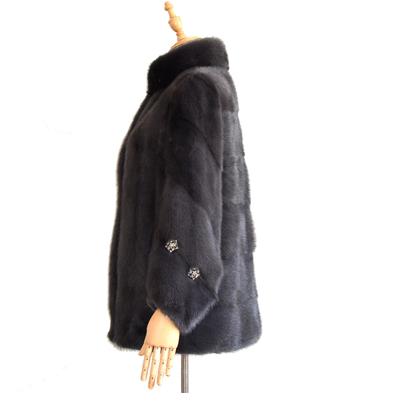 Натуральное зимнее женское Норковое меховое пальто с воротником-стойкой, девять четвертей, теплое и мягкое, высокое качество, есть Большой размер 8 XL