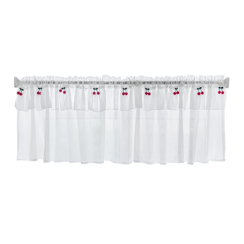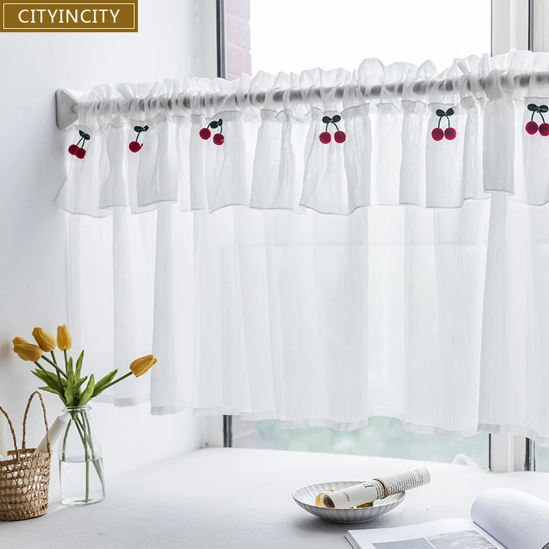 Короткая занавеска с вишневым узором для кухни, белая полупрозрачная прозрачная Тюлевая Короткая занавеска для бара, домашний декор по индивидуальному заказу