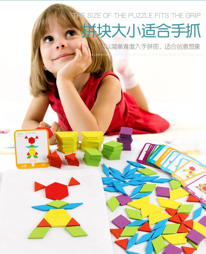 155 шт головоломки для детей геометрические Танграм деревянные ранн...
