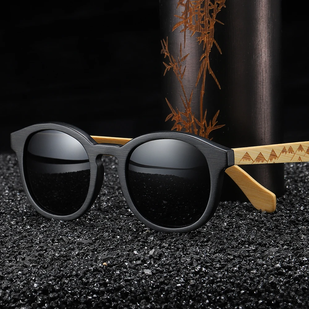 Мужские солнцезащитные очки с бамбуковой оправой, с поляризацией