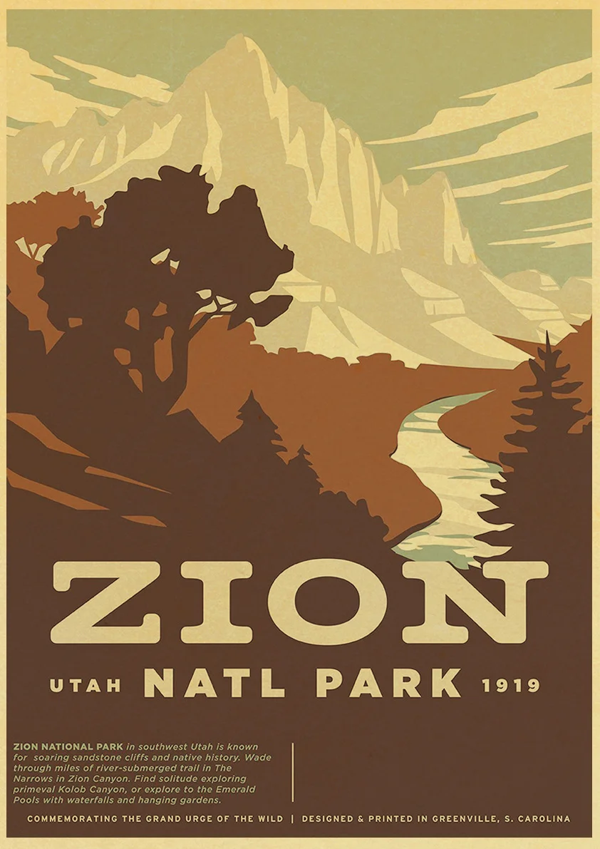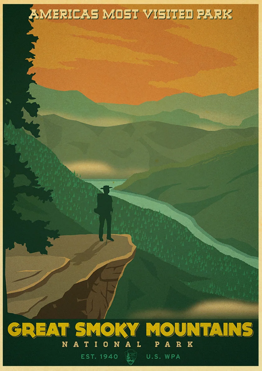 Винтажный национальный парк пейзаж крафт-бумага Ретро постеры картина стене плакат современное искусство постер для детской комнатыбара Декор