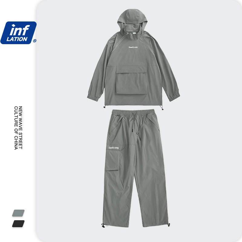 Мужской спортивный костюм из двух предметов, ветровка, Свитшот-карго в стиле хип-хоп, спортивные штаны и худи, уличная одежда 2020