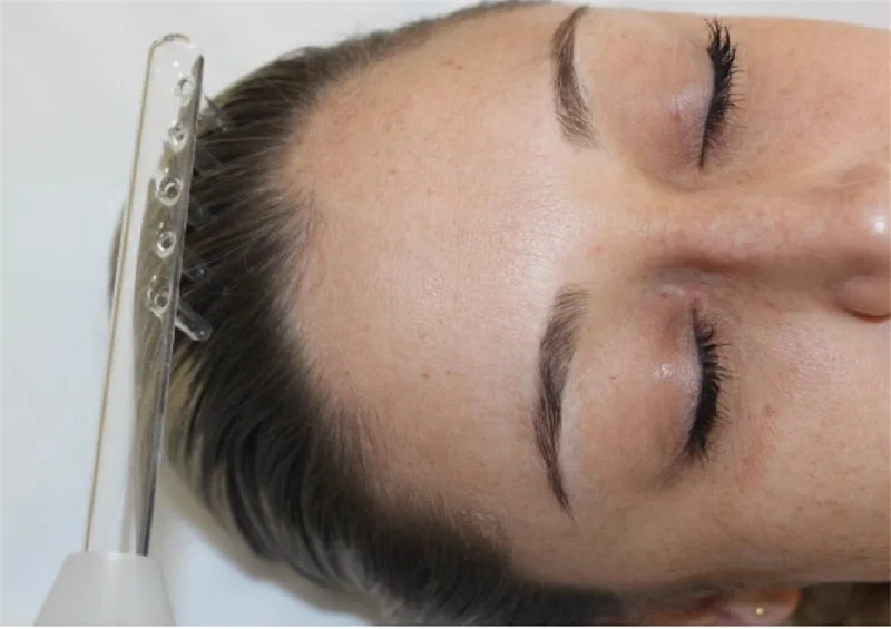 Дистанционная методика - воздействие на кожу искрового разряда, электрод находится на расстоянии 1-3 мм от кожи, ощущается легкое покалывание, видны голубые разряды-молнии, слышен тихи треск. Преимуществом последней методики является бактерицидное действие, благодаря которому прибор эффективно и наиболее часто используется при терапии проблемной кожи с акне.