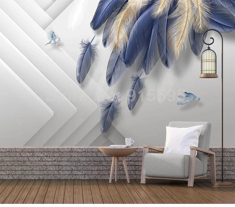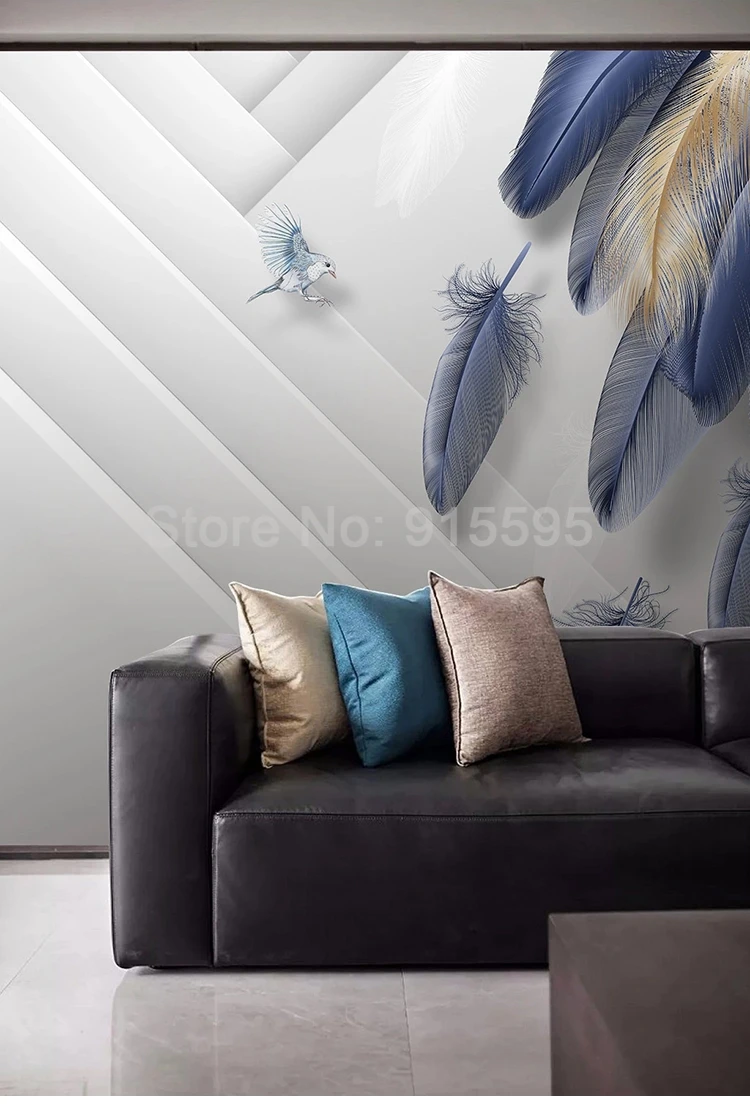 Фотообои на заказ, ручная роспись, перья, современные, модные, креа...