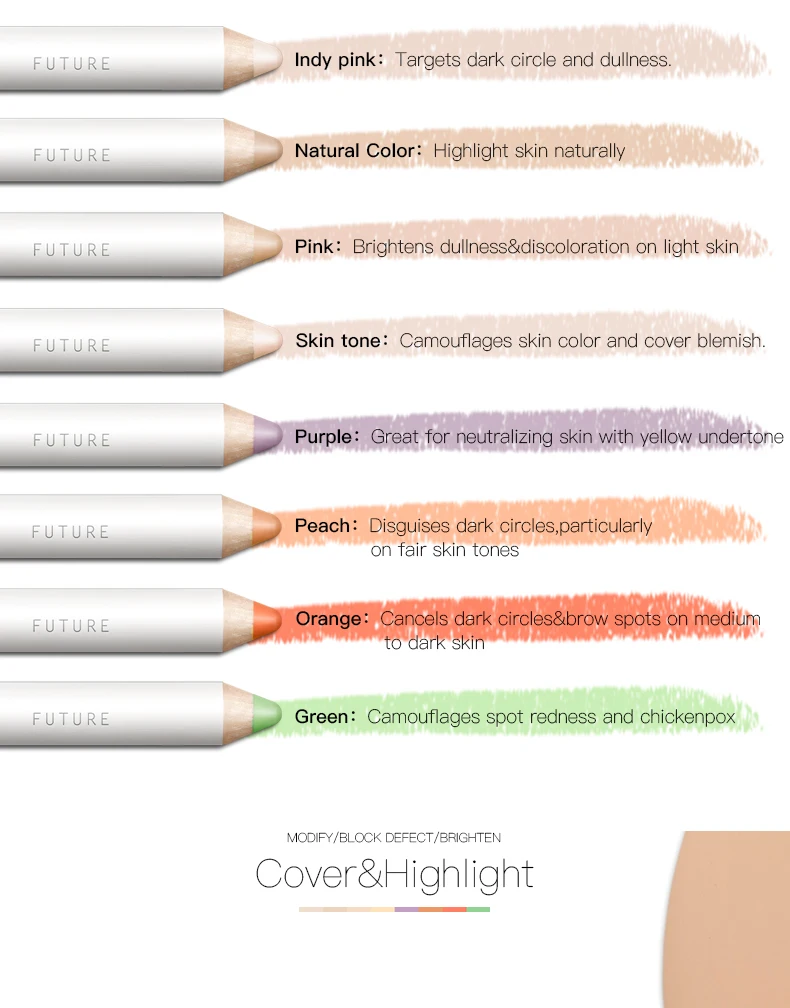 Различные цветные консилерные ручки, чтобы удовлетворить различные потребности, сделают ваш макияж более совершенным.