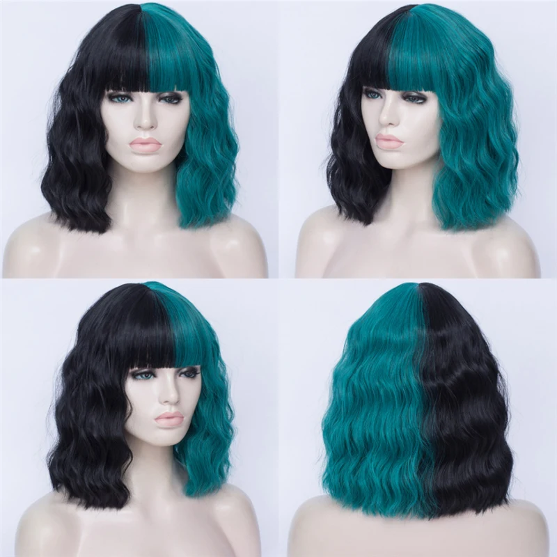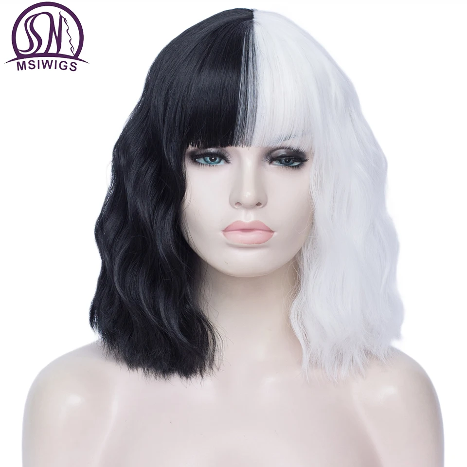 MSIWIGS, женский черный и белый парик, Короткие вьющиеся синтетические косплей, Искусственные парики аниме, Омбре, двухцветные, розовые, синие, красные, 20 цветов
