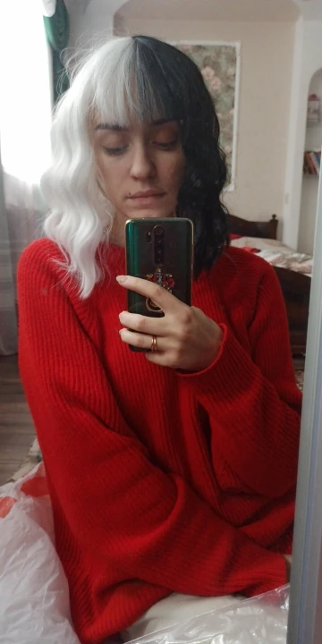 Дико довольна заказом! 6 июня заказала(написала продавцу, чтоб отправил побыстрее, что он и сделал), 13го заказ был уже в сберпосте. Все, как у всех: соответствует описанию, сделан качественно, в подарок шапочка, резиночки и наклейки(спасибо!). Немедленно примерила к макияжу. То, что надо! Мой образ будет не совсем точным, такая вольная интерпретация Круэллы, поэтому меня все мегаустроило. Челку, наверно, подстригу только и уложу чуть
