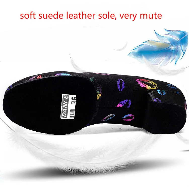 Обувь для латинских танцев для женщин; Детская обувь на низком каблуке средней высоты; Яркие Туфли-оксфорды с рисунком губ; Танцевальная обувь для бальных танцев, сальсы; Танцевальные Кроссовки для девочек