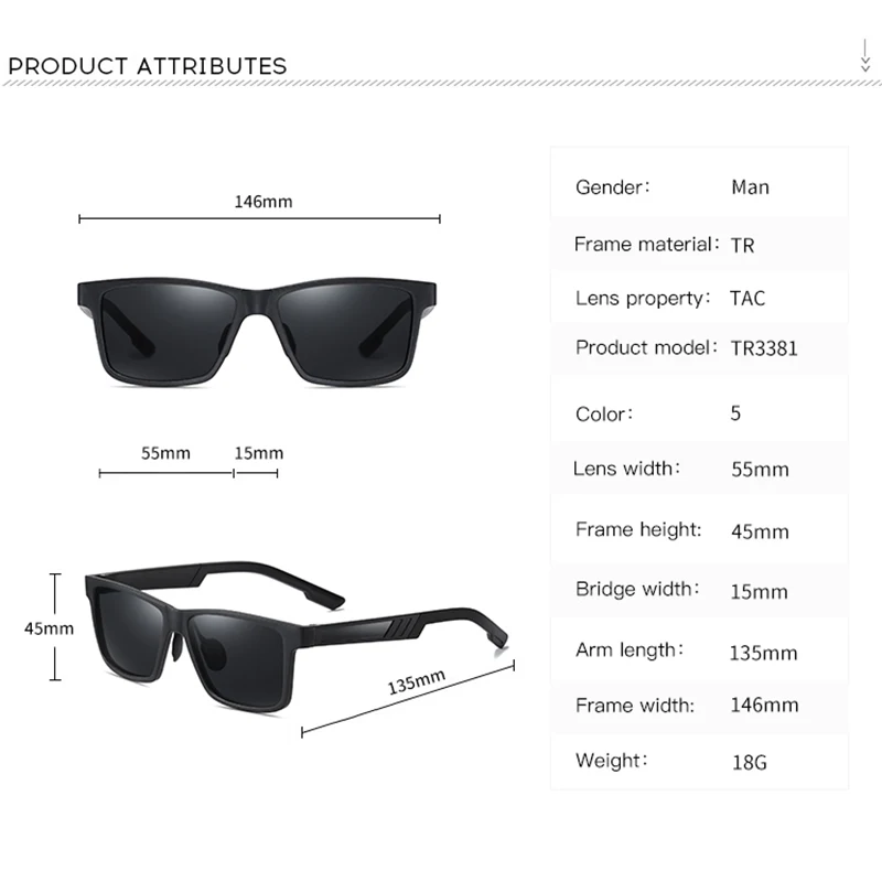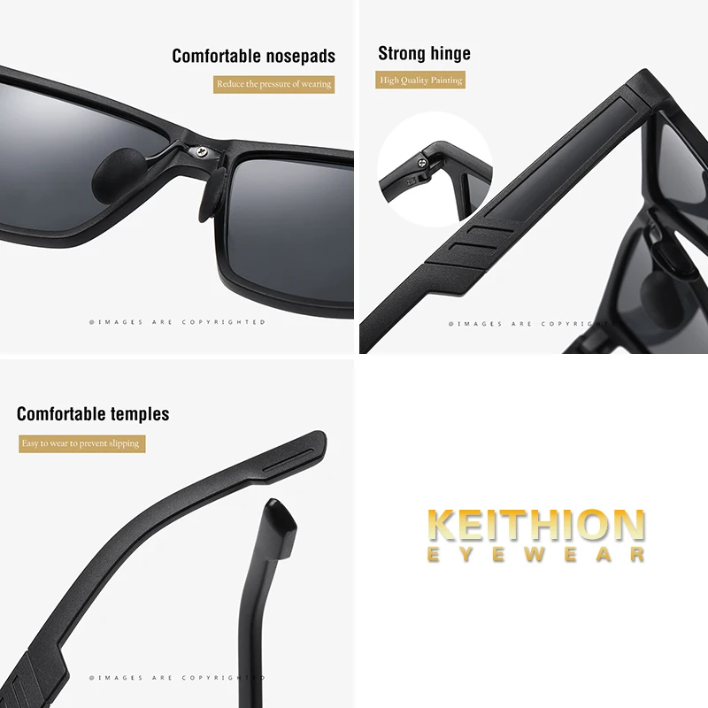 Мужские и женские классические поляризационные солнцезащитные очки KEITHION, Прямоугольная оправа для вождения, UV400
