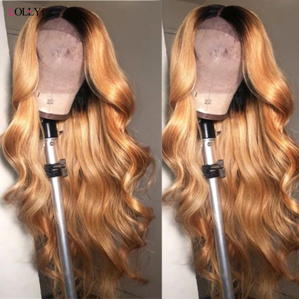 Парики из натуральных волос на шнурках Lolly Honey, блонд, волнистые бразильские парики для волос средней длины, парики для черных женщин P4/27, парики из натуральных волос