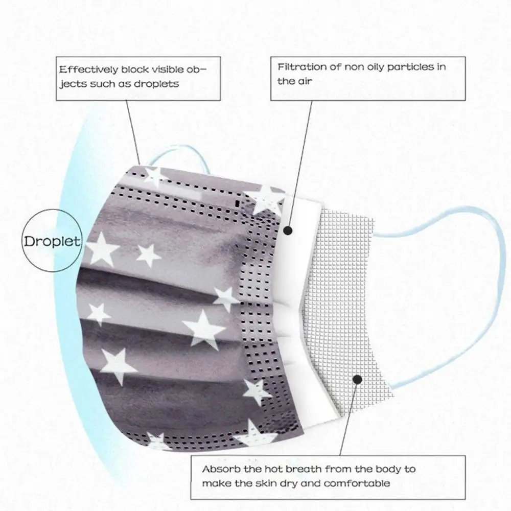 10-100 шт., Одноразовые Дышащие маски для лица с принтом звезд