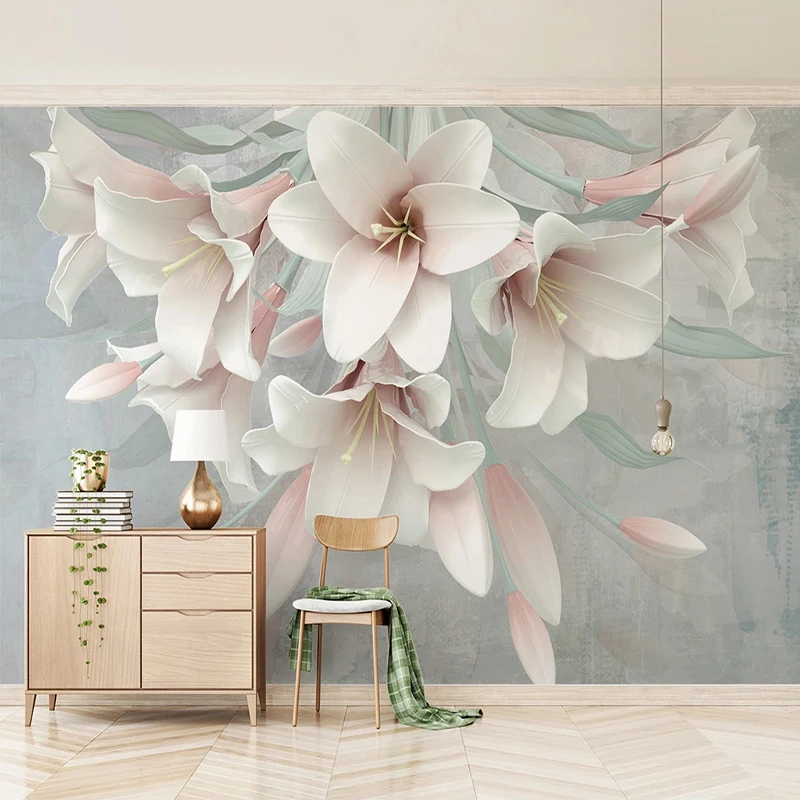 Настенные 3D-обои по фото по индивидуальному заказу, фотообои с розовыми цветами лилии для гостиной, спальни, романтический домашний декор, водонепроницаемые Стикеры с рисунком