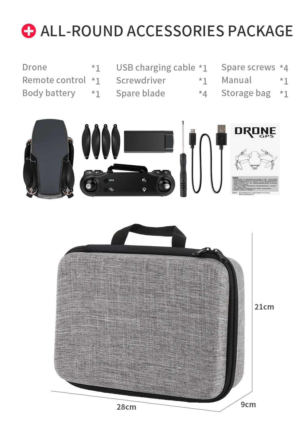 1 x Квадрокоптер SG108 / SG108 Pro RC1 х пульт дистанционного управления1 или 2/3x7,4 в 2200 мАч (опция)2 пропеллера (1A + 1B)1 x USB-кабель для зарядки1 отвертка1 х Руководство пользователя