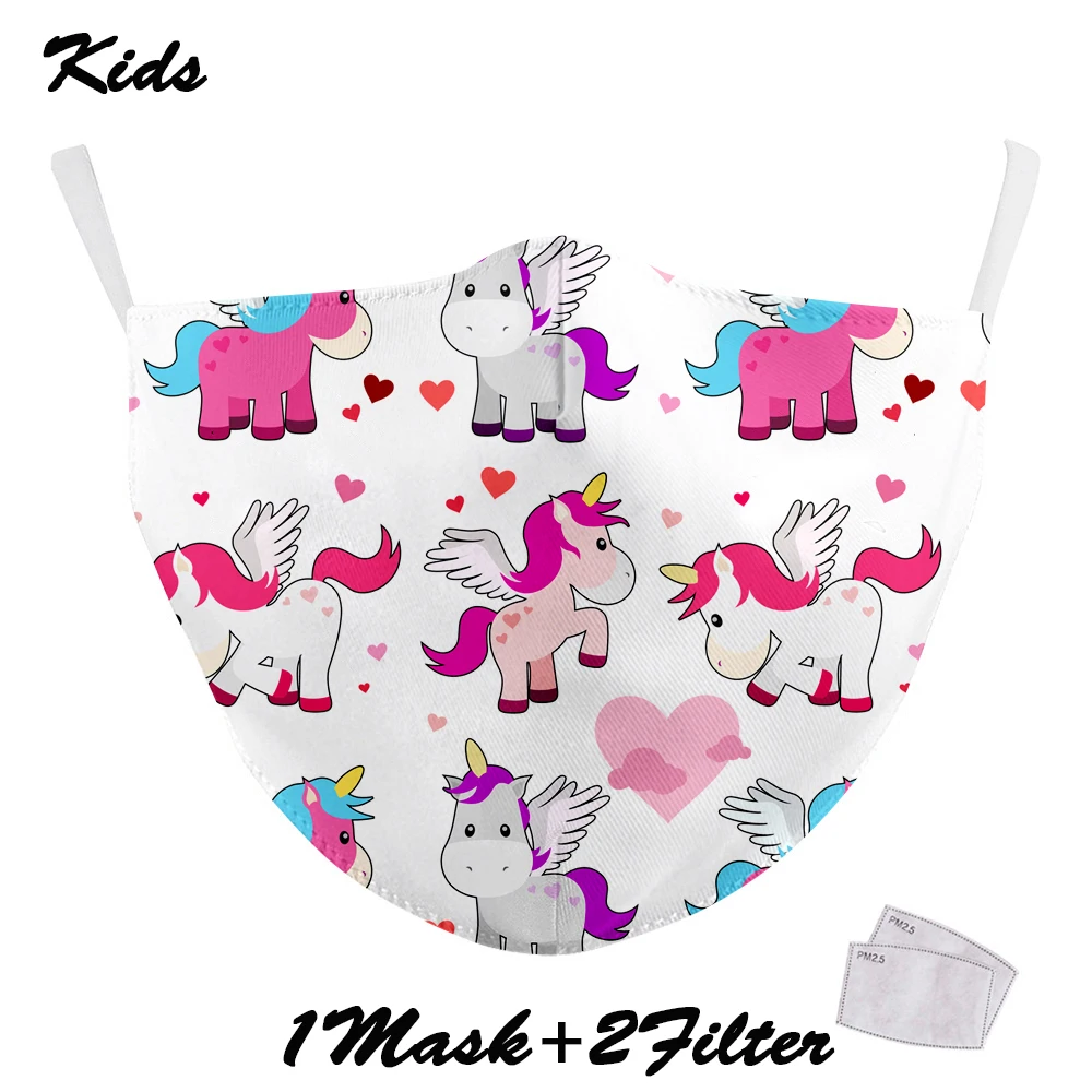 Милая детская маска с принтом пони, Мультяшные розовые маски с изображением единорога, тканевые моющиеся маски, многоразовый чехол для лица для детей